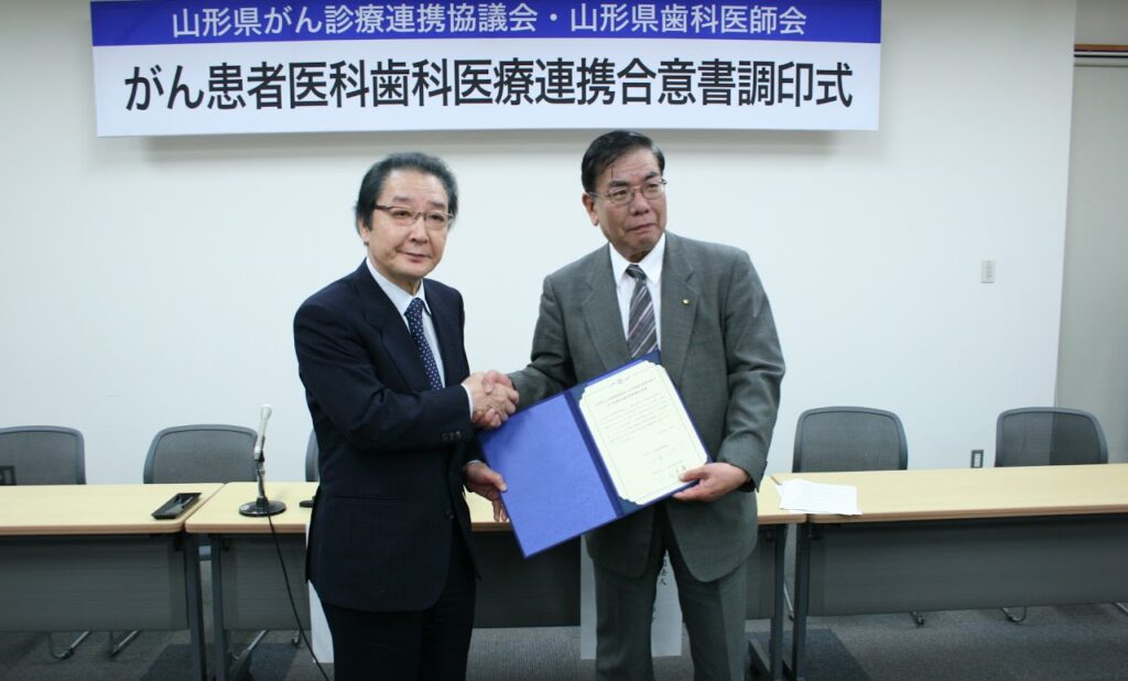 平成25年5月27日がん患者医科歯科連携の合意書を取り交わしました。がん患者歯科医療連携講習会の修了者で登録を了承された歯科医師名簿を提供していきます。 医科歯科連携マニュアル(Word) 付録1「全身麻酔前の歯科受診のお勧め」 付録2「がん医療連携歯科医院について」 付録3「手術を予定されている方へ」ポスター 歯科医師登録名簿(PDF)